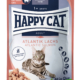 “Happy Cat kød i sovs” med and, er tilberedt med kød af høj kvalitet og lækker sovs. Det bidrager ikke kun til en reguleret væskebalance, men er også velsmagende og kornfri. “Happy Cat kød i sovs” med and er også ideel til neutraliserede katte.