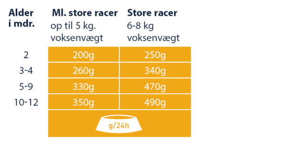 Anbefalet daglig fodermængde (g/dag):