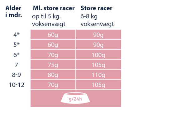 Anbefalet daglig fodermængde (g/dag):