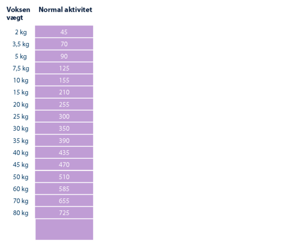 Anbefalet daglig fodermængde (g/dag):