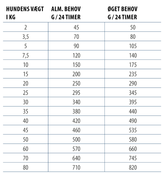 Anbefalet daglig fodermængde (g/dag):