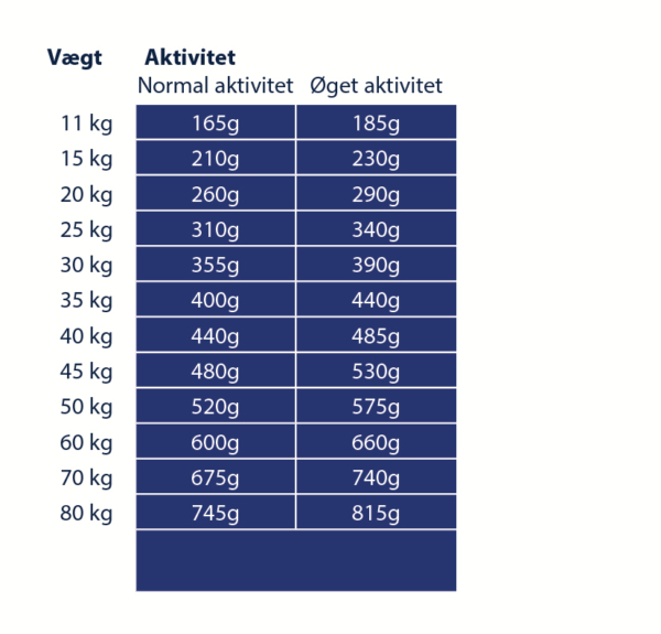 Anbefalet daglig fodermængde (g/dag):
