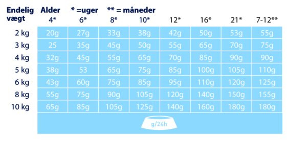 Anbefalet daglig fodermængde (g/dag):