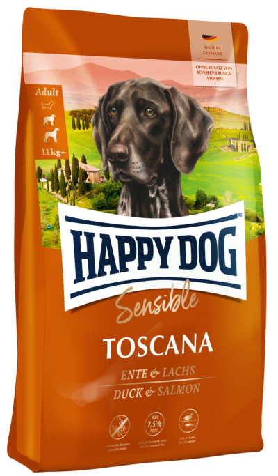 Komplet foder, velegnet til sensible voksne hunde, fra 11 kg. voksenvægt med velsmagende and, laks, aromatiske middelhavsurter og newzealandske muslinger.