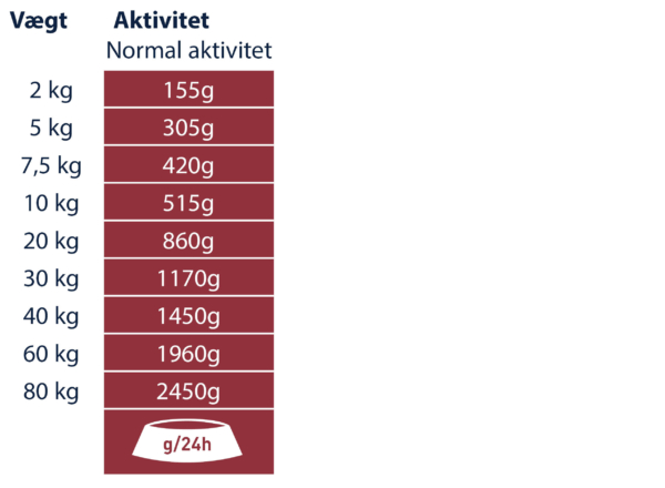 Anbefalet daglig fodermængde (g/dag):