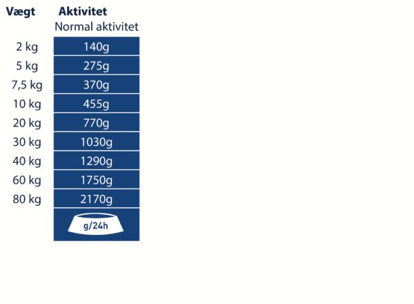 Bemærk: Vådfoder kan gives rent eller blandes med Happy Dog Flocken Mixer. Specifikationerne er vejledende. Individuelle behov afhænger af alder, race, vægt og aktivitetsniveau. Fodres ved stuetemperatur. Tilbyd altid frisk drikkevand.