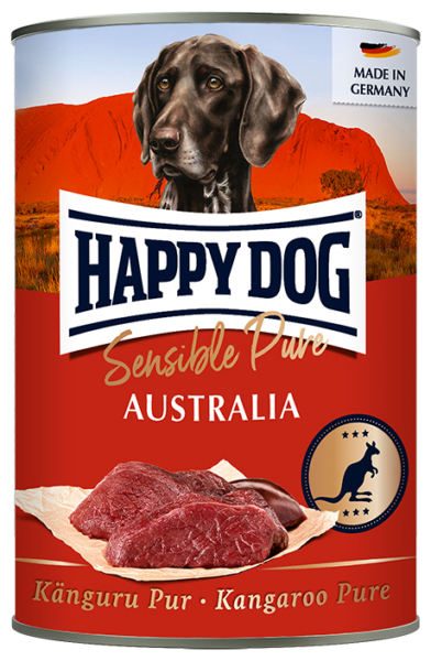 Ren nydelse af animalsk protein fra kænguru- til ægte kødelskere. Fremstillet i Tyskland af 100% kød og animalske biprodukter fra kænguru. Indeholder ingen kornprodukter og er fremstillet uden tilsat sukker. Anvendelsen af kænguru som eneste kilde til animalsk protein, gør den særlig velegnet til fodring af sensible hunde. Sensible Pure Australia kan bruges som fuldfoder eller i kombination med Happy Dog flagefoderblanding eller Happy Dog tørfoder.
