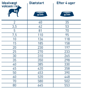 Mængden af foder skal tilpasses hundens individuelle stofskifte og skal muligvis justeres i moderate mængder. Hunden skal altid have frisk vand til rådighed. Bemærk ved blandet fodring: 100 gr vådfoder = 25 gr tørfoder